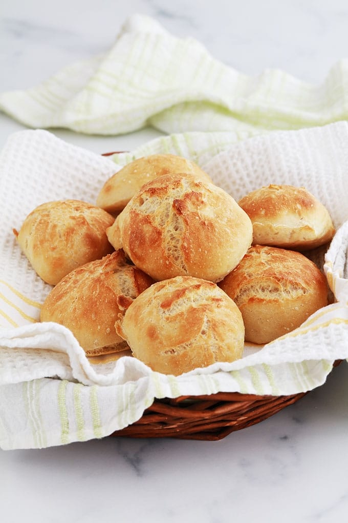 La croûte est croustillante et la mie souple et légère, ils sont si simples à faire ! Je les fais 1 à 2 fois par semaine.